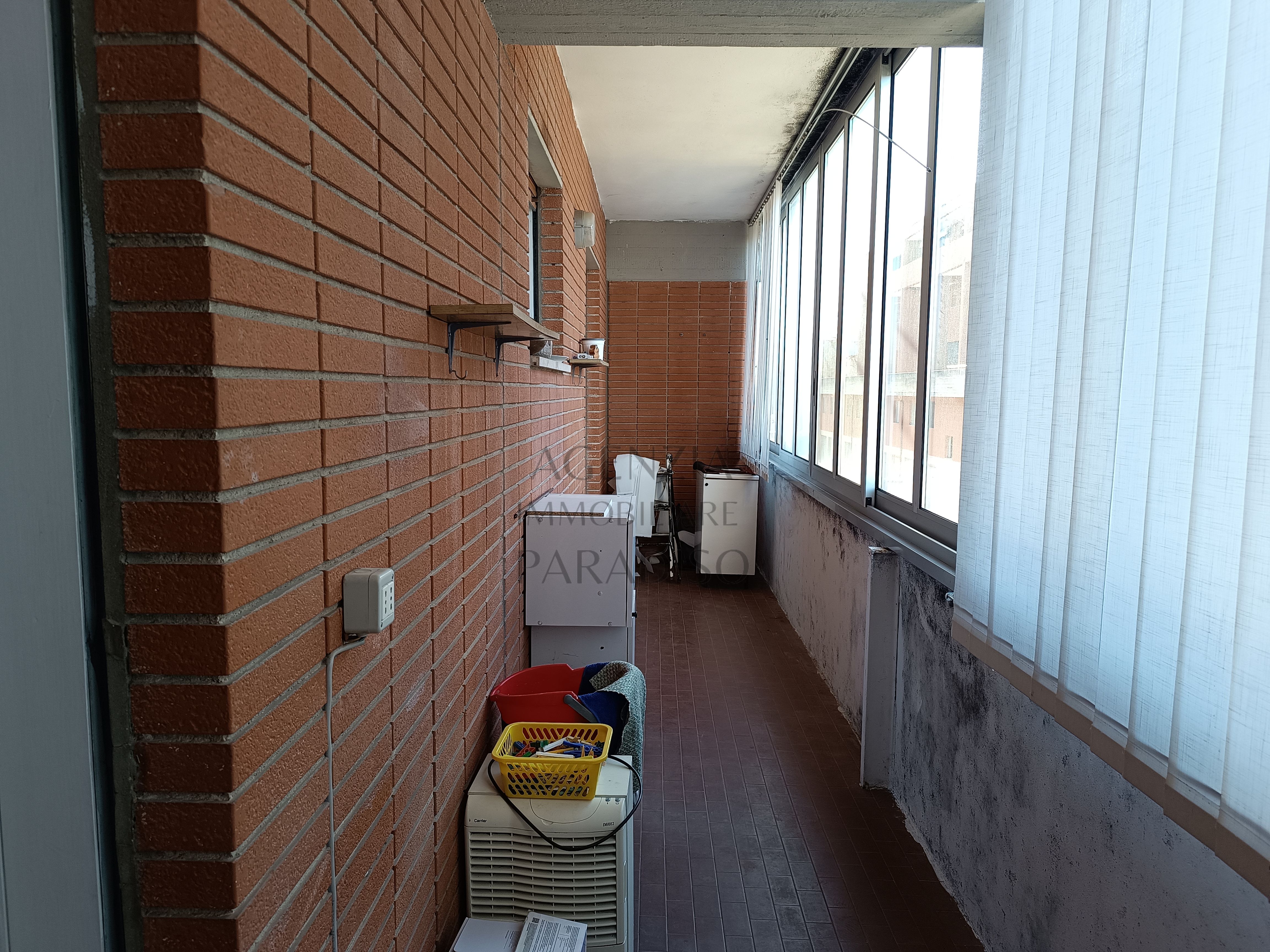 L’appartamento è composto da zona living, cucinotto, tre camere da letto, un bagno e un pratico ripostiglio. Completa la parte abitativa un balcone verandato nella camera matrimoniale, con veranda rifatta alcuni anni fa, che rappresenta uno spazio aggiuntivo sfruttabile in ogni stagione.